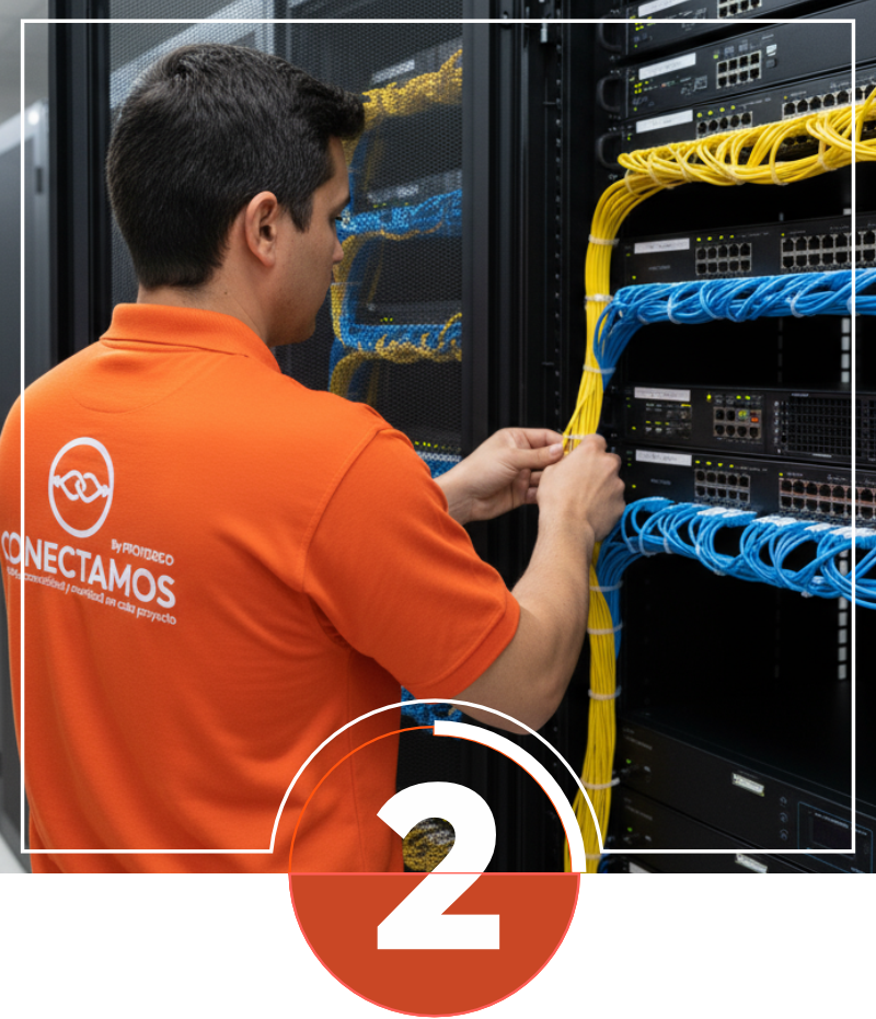 Organización de racks, switches, patch panels y centros de datos para garantizar orden, rendimiento y facilidad de mantenimiento.